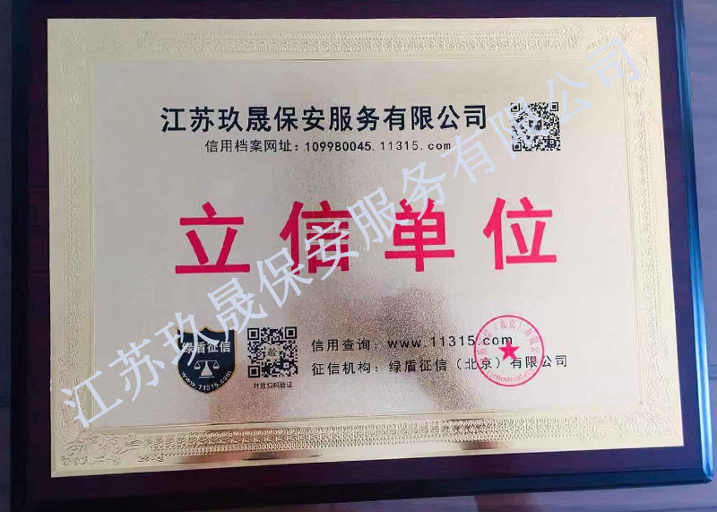 江蘇玖晟保安服務有限公司成立于江蘇省昆山市千燈鎮。注冊資金:2000萬,是擁有省公安廳頒發的保安服務許可證的企業【蘇公保服20170046】,也是昆山市保安協會常務理事單位。